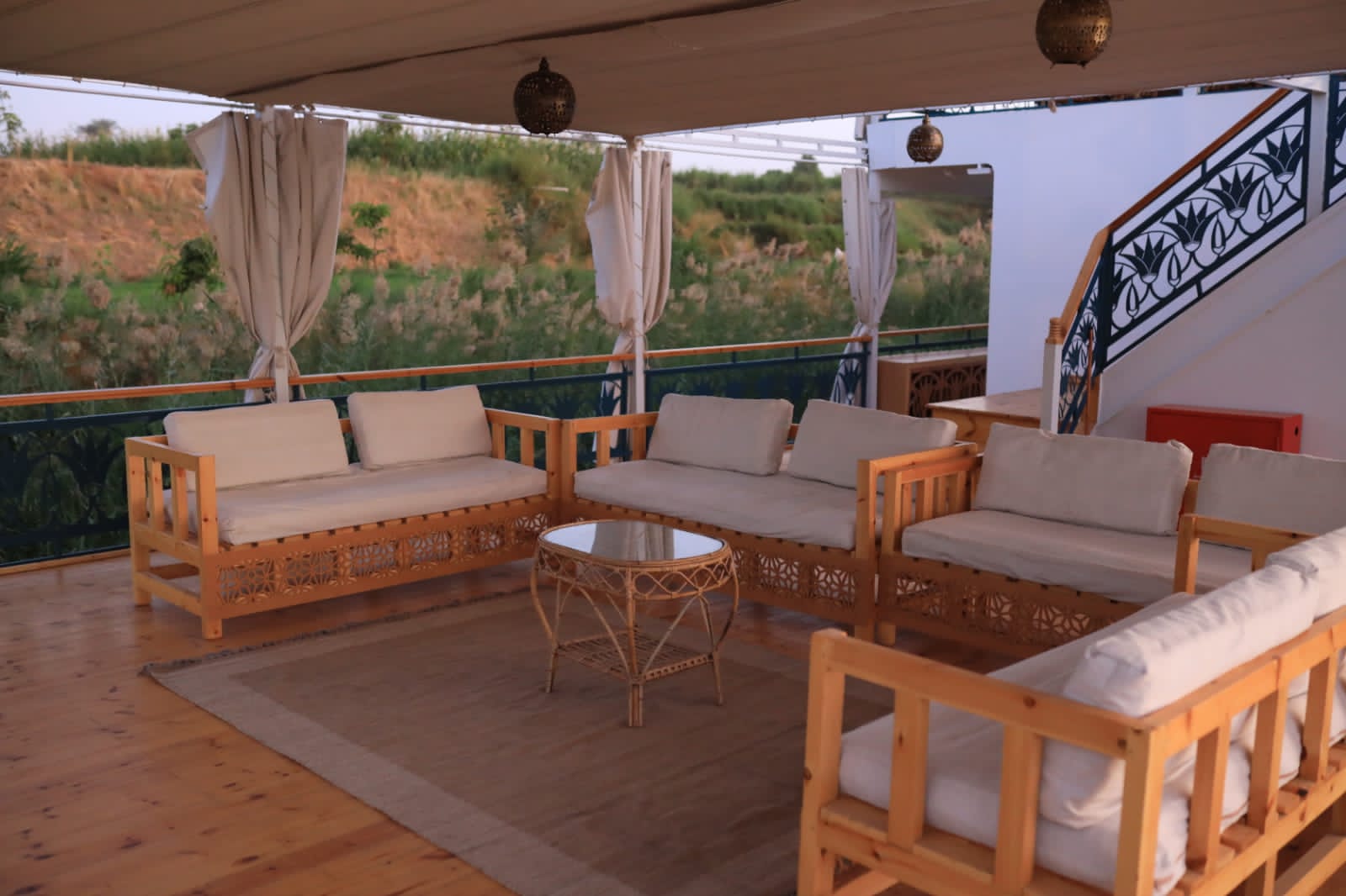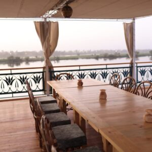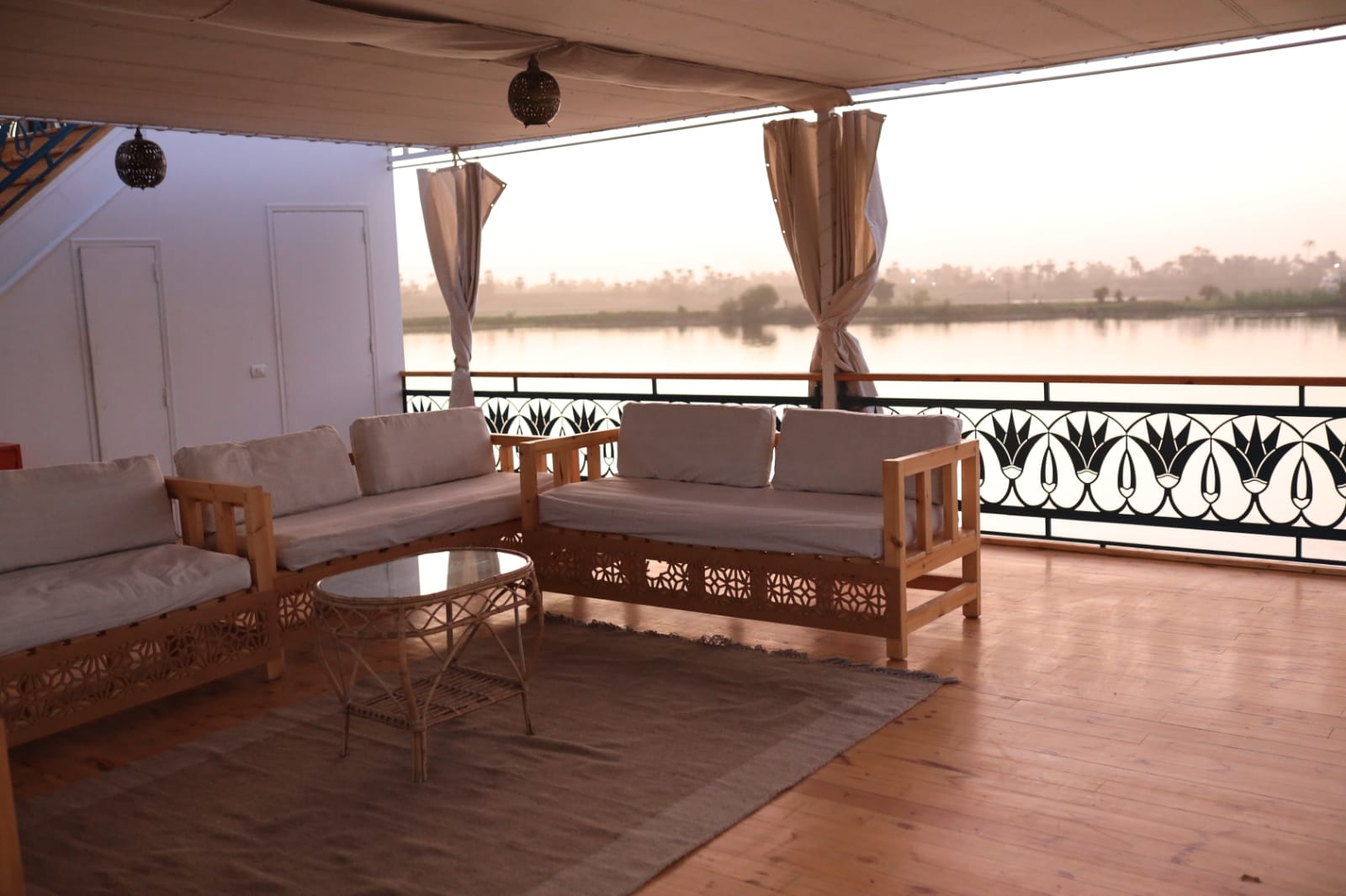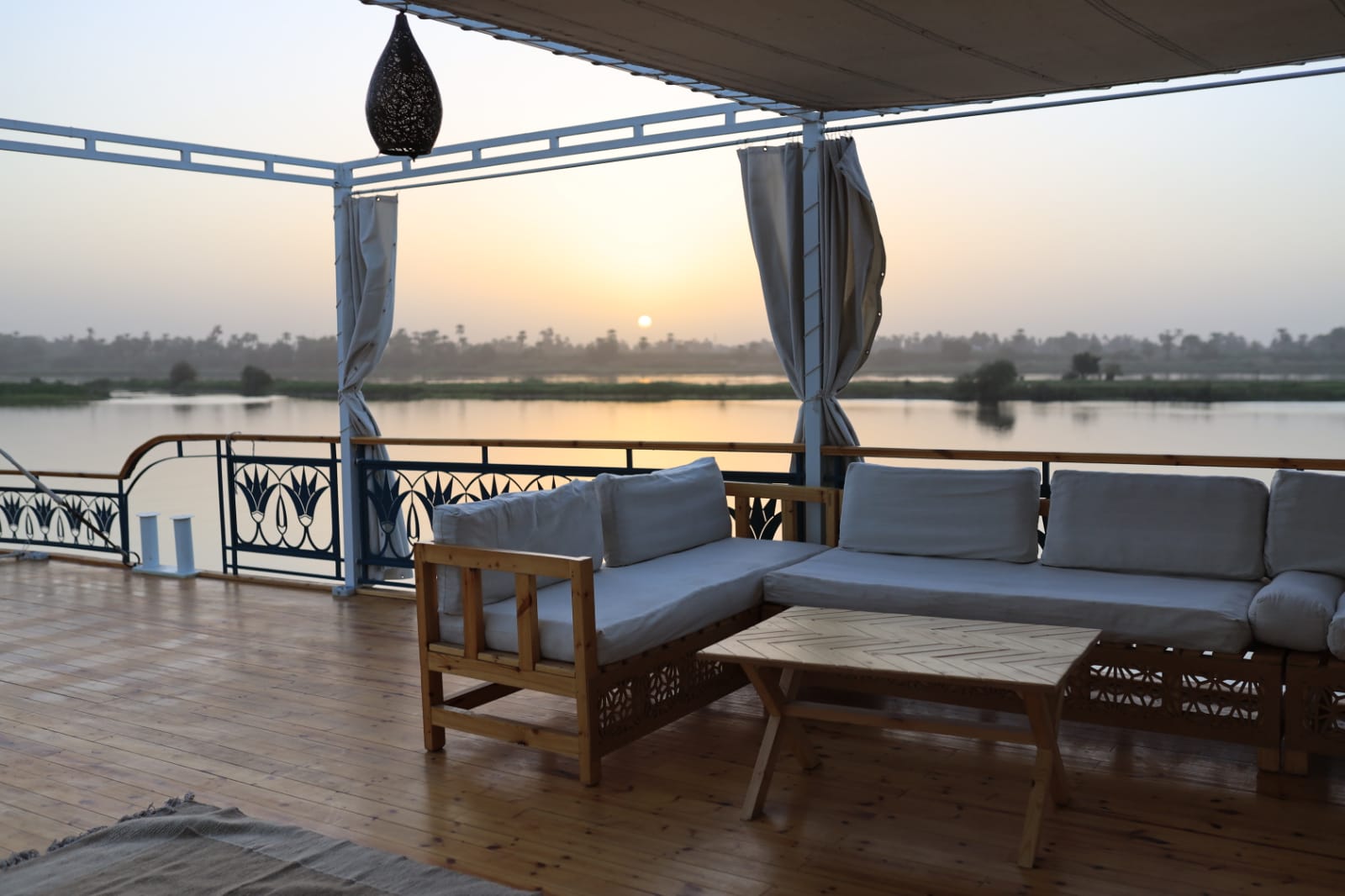 There are also several different Egyptian and Bedouin-style seating areas around the dahabiya to sit back and enjoy the view of Egypt and life on the Nile River.