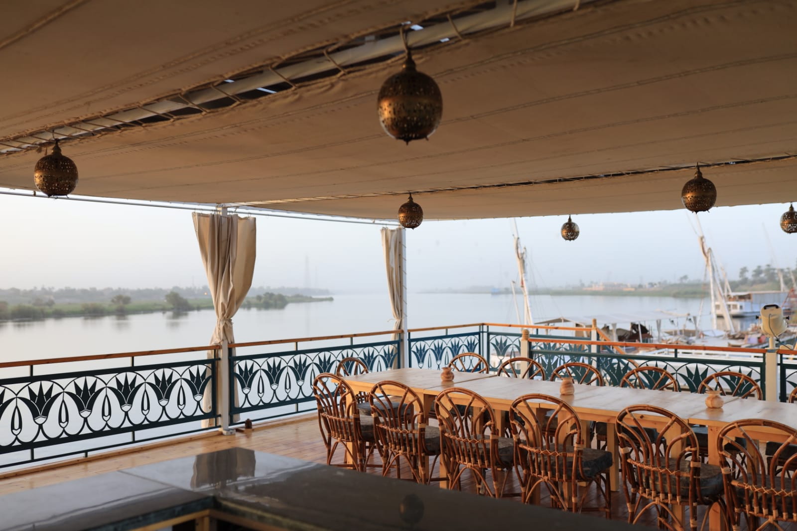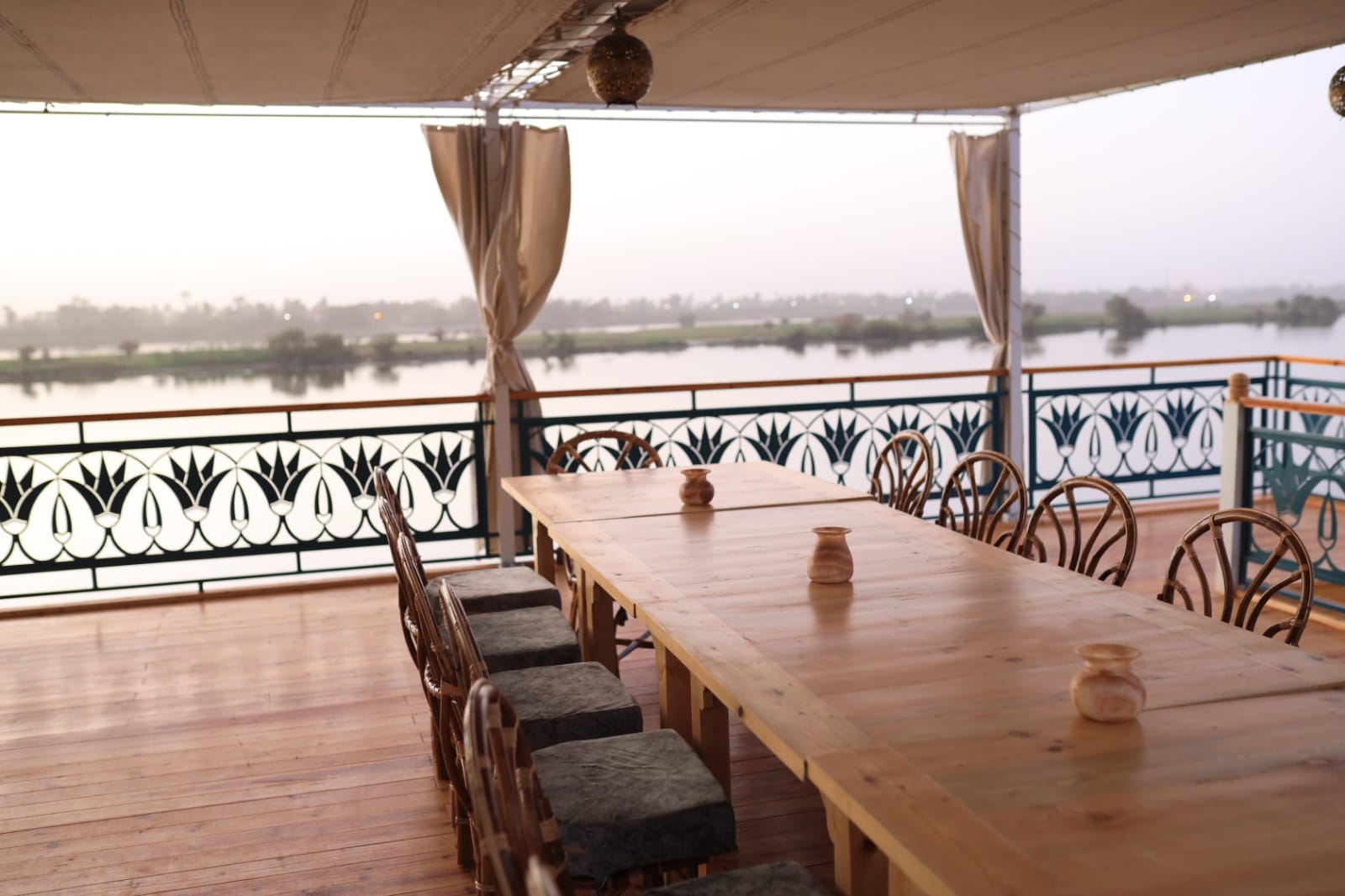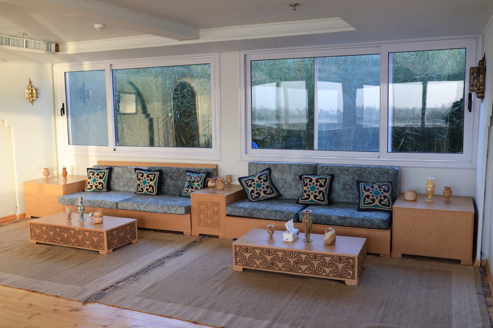 There are also several different Egyptian and Bedouin-style seating areas around the dahabiya to sit back and enjoy the view of Egypt and life on the Nile River.