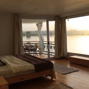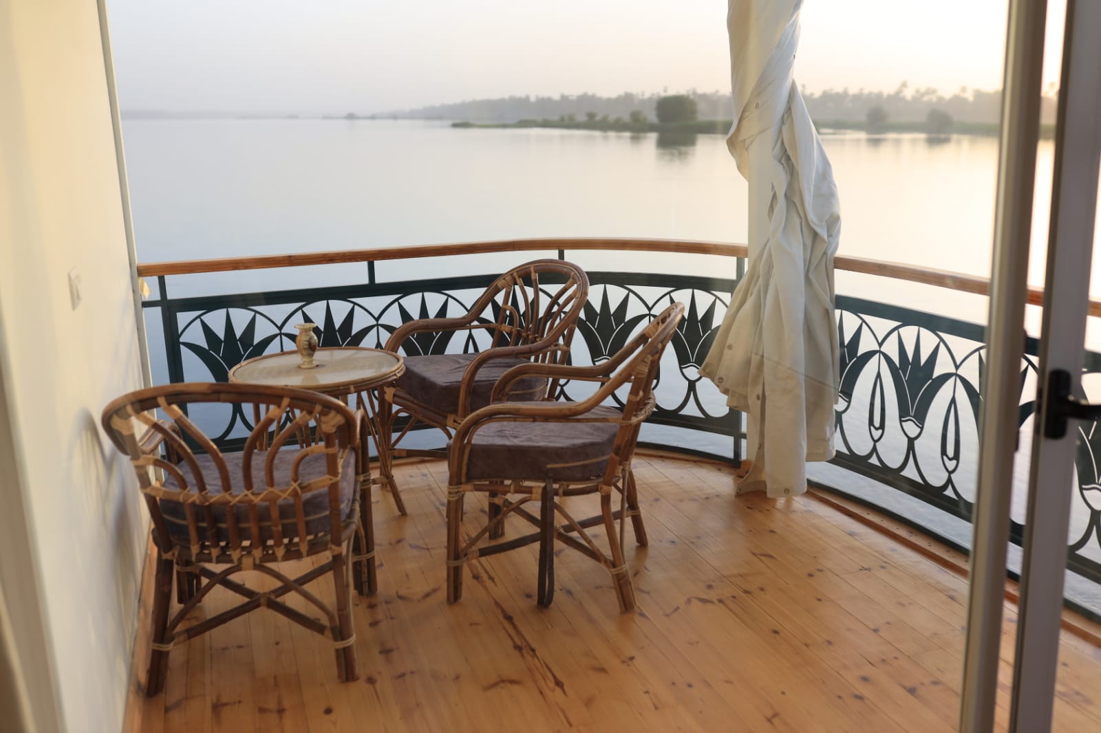There are 13 luxurious cabins, with 5 very large suites, 1 with a terrace and 4 with balconies, 2 twin bed suites with terraces all the suites also have large windows so you always feel as if you are in an infinity room. There are also 6 large standard cabins with large windows with the same feeling but you are closer to the water of the Nile. All rooms have air/heating conditioning, a mini-fridge and a bathroom.