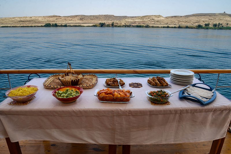 The deck with its seating style seating areas with lounge chairs and cushions complete this comfort. The open-air dining area is ideal for enjoying the view while you be relishing your meals. You will enjoy a typical and refined cuisine, made from fresh Egyptian ingredients.