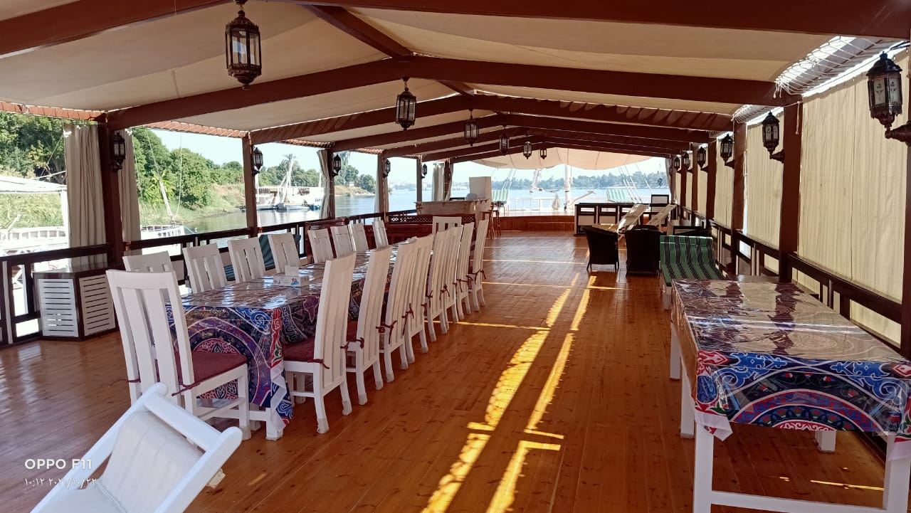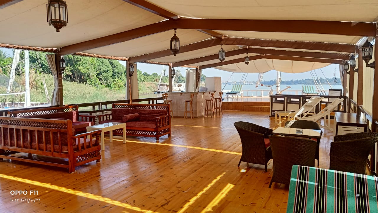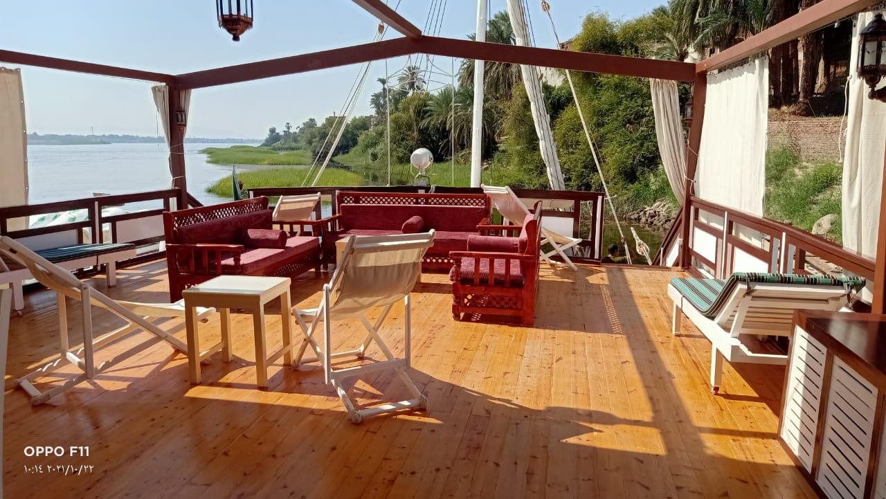 On board, the spacious upper deck provides different seating areas to relax, whether it is to sunbathe on the sun beds or sit in the shade you will experience the Nile and its tranquil scenery and the village life of Egypt pass by in perfect peace. Imagine sitting on the deck and enjoying the amazing views in wonderful tranquil silence and seeing the many ancient Egyptian monuments, temples, tombs and scenes beside the Nile that have not changed in thousands of years.