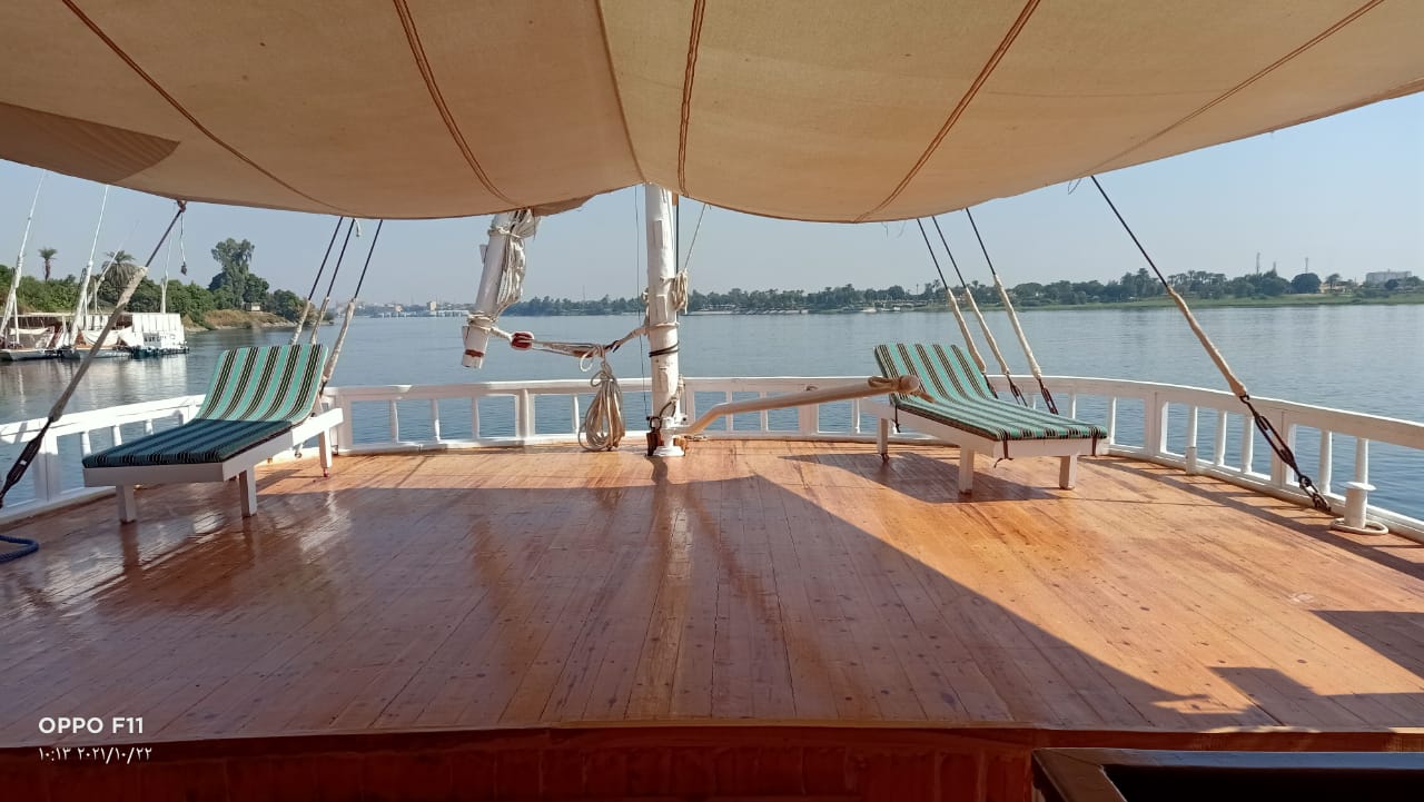 Nile Sapporo is a beautiful, hand crafted, traditional Egyptian sailing ship is ……m long and ……. metres and has 6 en-suite cabins and 2 suites complete with panoramic windows.